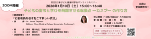 2026年1月10日(土)、第5回日本子ども健康科学会オンラインセミナー「子どもの育ちと学びを飛躍させる転換点-カスプの作り方-」を開催いたしました。 本セミナーは、法政大学文学部心理学科 教授 島宗理先生を座長に迎え、 […]