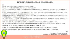 2026年2月7日(土)・2月8日(日)に、長野県佐久市の佐久平交流センターにて、第27回日本子ども健康科学会学術大会が盛況のうちに開催されました。 大会での講演内容につきましては、学会誌「子どもの健康科学」次号(第27 […]
